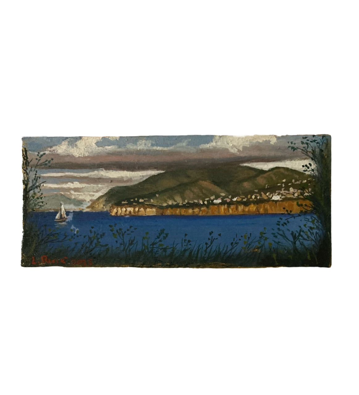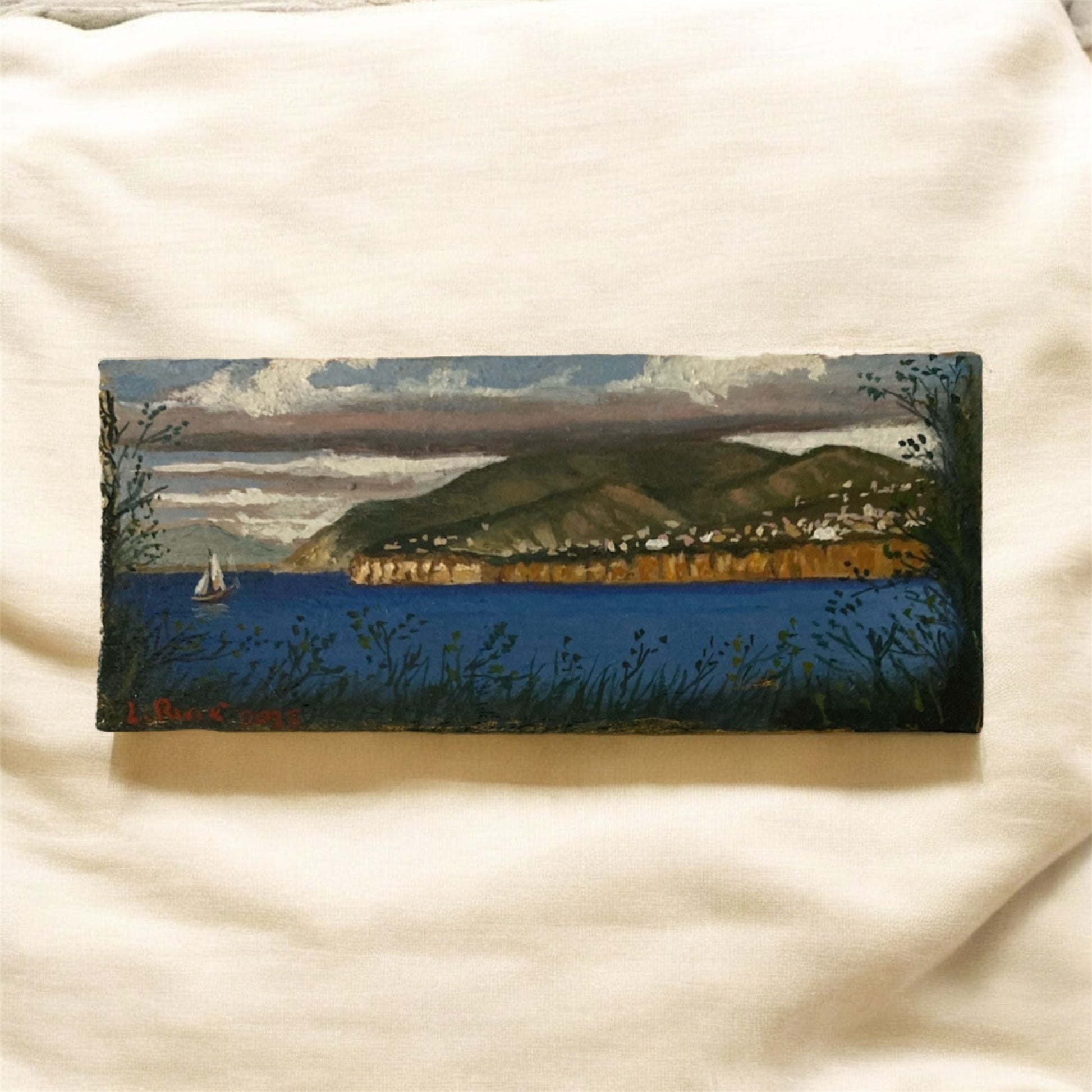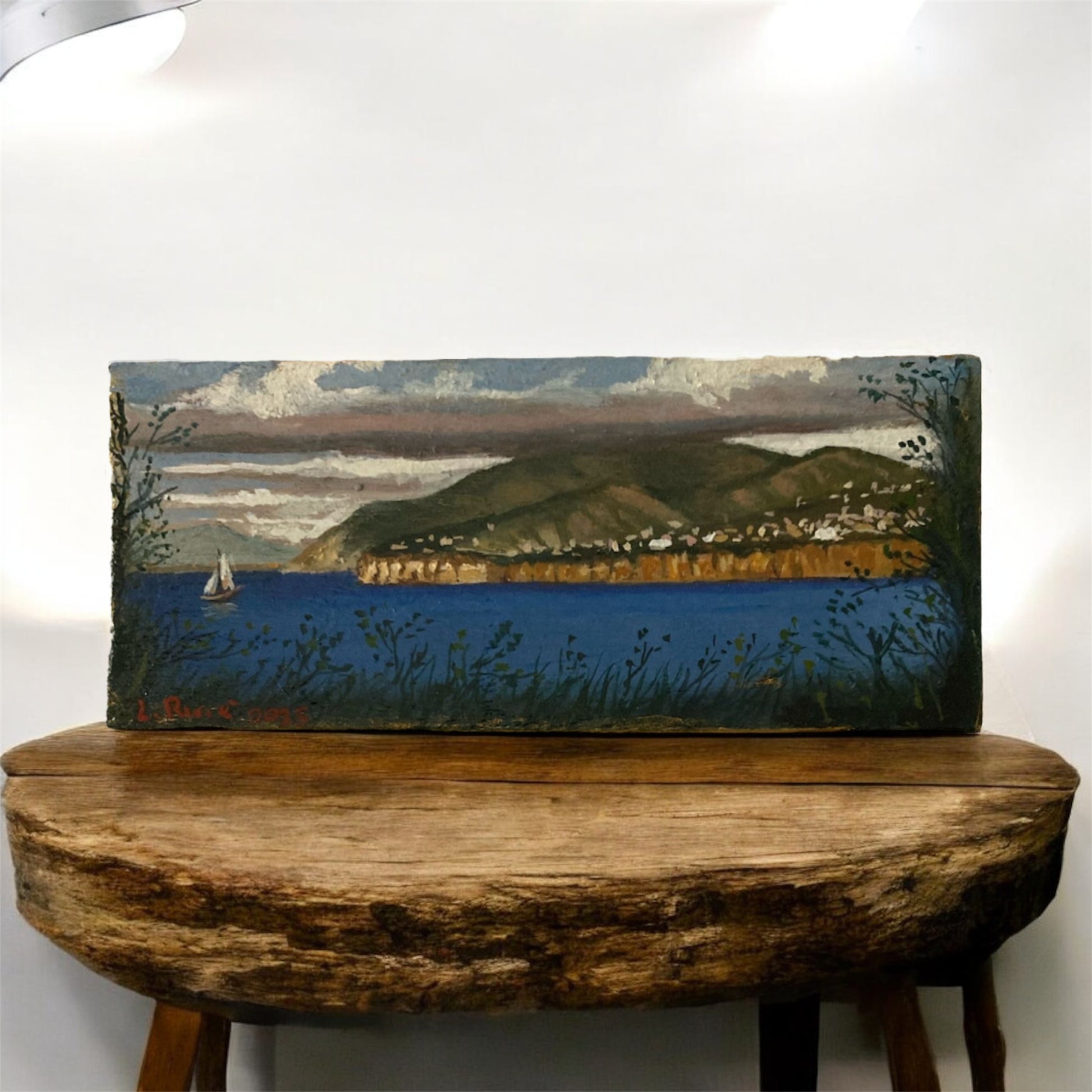 Opera Unica a Olio su Tavola – Sorrento con Barca sullo Sfondo