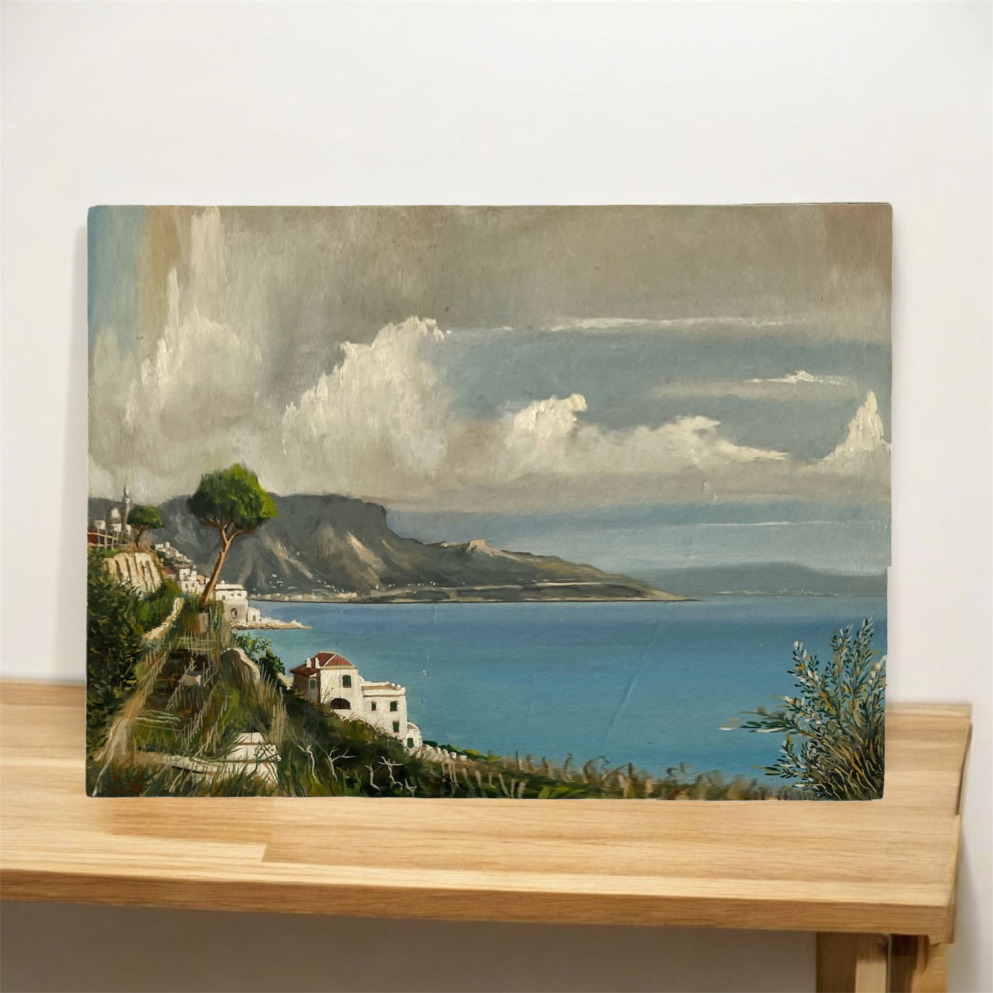 Realizzata con tecnica olio su tavola da un artista artigiano italiano per Salerno Place, l’opera esprime la grandiosità e l’equilibrio della natura e dell’architettura che rendono la Costiera un patrimonio di bellezza senza tempo. Le dimensioni generose (17 × 23 cm) permettono di apprezzare ogni dettaglio, rendendola un vero e proprio punto focale in qualsiasi ambiente.