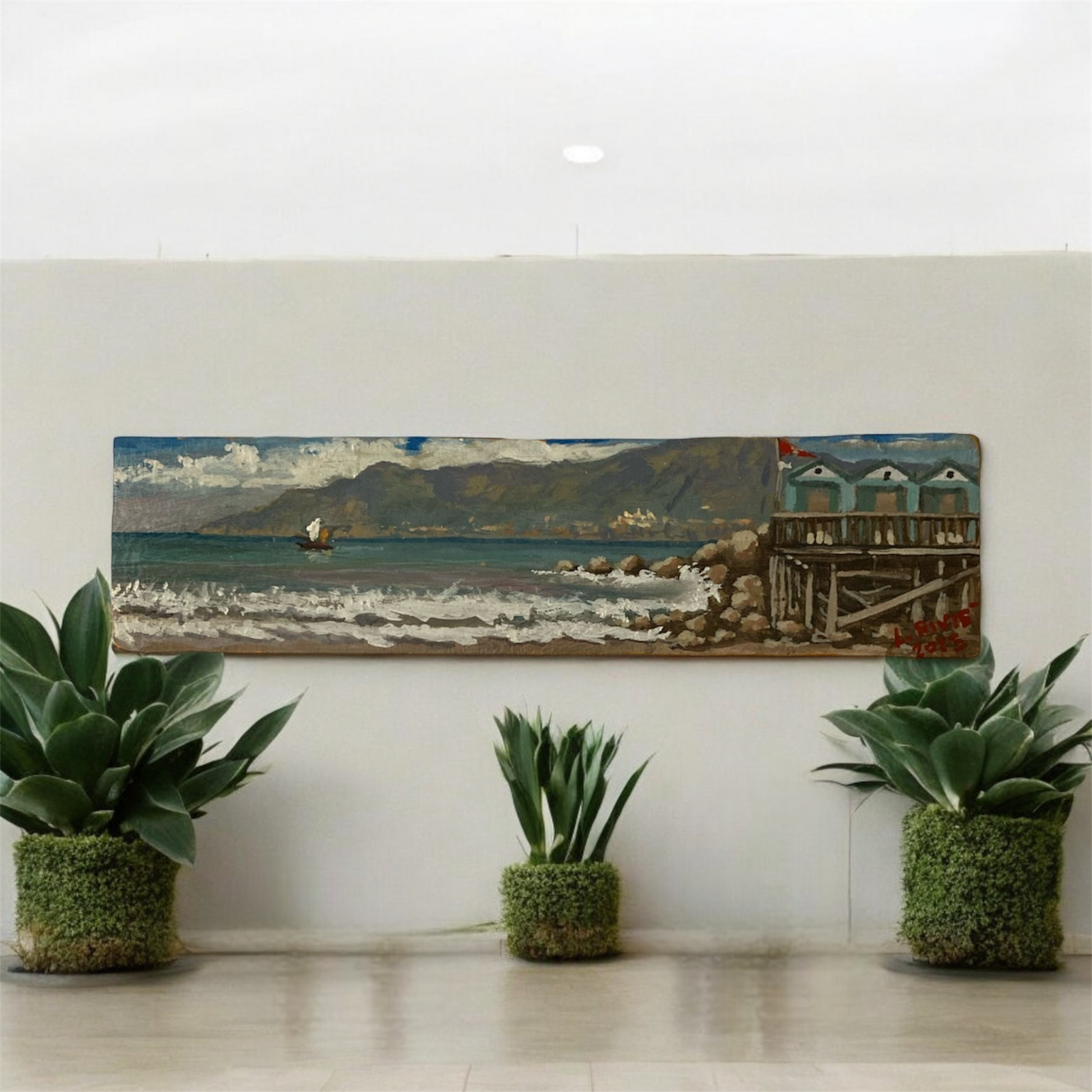 Realizzato con tecnica olio su tavola da un artista artigiano italiano per Salerno Place, il dipinto è un omaggio visivo alla bellezza iconica e struggente di uno dei tratti costieri più ammirati al mondo. Le dimensioni (18 × 4,4 cm) lo rendono perfetto per spazi stretti, come cornici lineari, mensole moderne o composizioni decorative orizzontali.